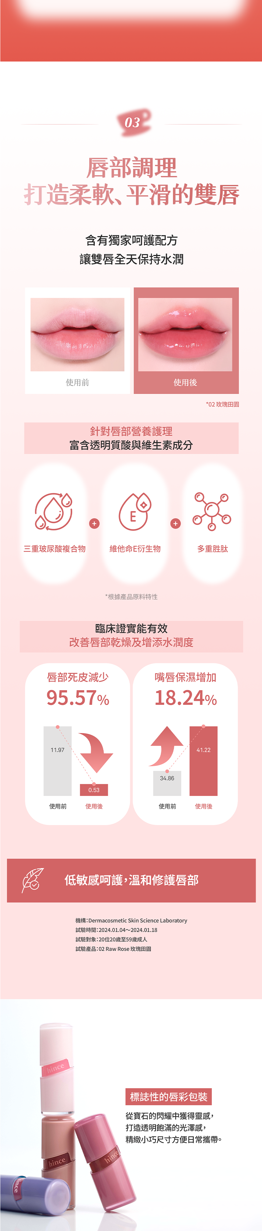 用途:修護唇部乾燥,提升氣色,修飾唇部,增加唇部色彩